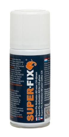 Super fix activator voor het versnellen van de uitharding van hoog viscose secondelijmen. Deze activator reinigt, ontvet en versnelt de uitharding van seconde lijmen. De handvastigheid van deze superfix activator is binnen 1-4 seconden, dit is afhankelijk van het type ca-lijm, de ruimte tussen de delen en de omgevingstemperatuur. Tevens kan deze activator voor, tijdens of na de lijm aangebracht worden.
