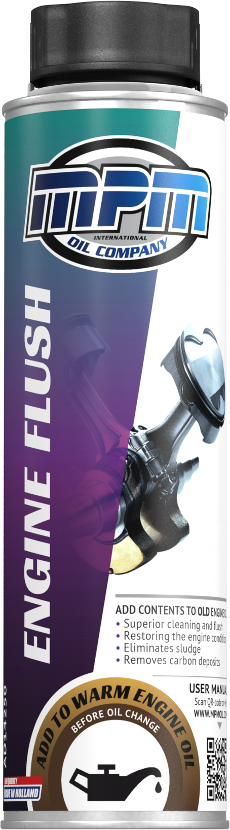 MPM inwendige motorblok reiniger, reinigt het motorblok van binnen. Dit is een olie detergerende (schoonmakend) formulatie en zorgt voor het verwijderen van slib en vuil opbouw alsmede het bevorderen van minder olieverbruik. De engine flush helpt bij het herstellen van brandstofverbruik, het verhogen van het rendement en verminderen van uitstoot van benzine- en dieselmotoren. Deze motor flush is geschikt voor alle benzine, diesel en LPG motoren al dan niet voorzien van een turbo. Dit schoonmaakmiddel is mengbaar met minerale motorolie, semi synthetische motorolie en synthetische motoroliën.