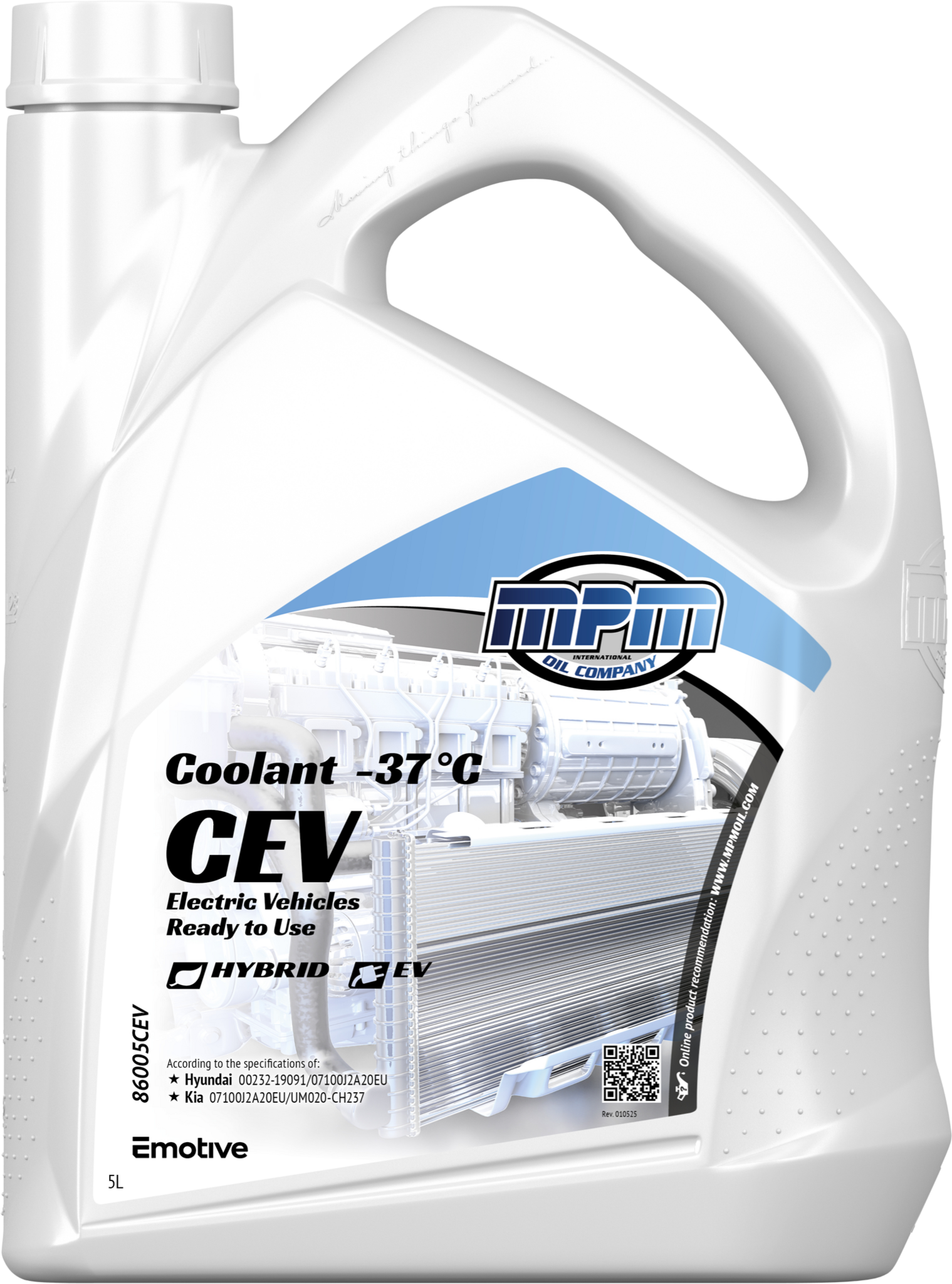 Mpm koelvloeistof -37°C voor elektrische voertuigen. Deze koelvloeistof is op basis van de bewezen OAT technologie met een verminderde geleidbaarheid is speciaal ontwikkeld voor indirecte koeling van batterij- elektrische voertuigen. De combinatie van remmers en stabilisatoren in de formulatie van deze koelvloeistof zorgt voor een lage en stabiele elektrische geleidbaarheid. Door de speciale additieven is deze koelvloeistof niet geschikt voor het gebruik in traditionele koelsystemen en brandstofceltoepassing. Deze koelvloeistof is kant en klaar.