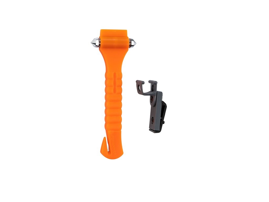 Dubbele hamer met geharde punten om ramen in enkele seconden te verbrijzelen. Ingebouwd, vlijmscherp Solingen mes voor het doorsnijden van gordels. Door zijn fluorescerende kop is de noodhamer in het donker altijd makkelijk te vinden.