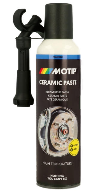 MOTIP Keramische Pasta is een hoogwaardige montagepasta op basis van keramische deeltjes voor de langdurige smering van sterk belaste oppervlakken die worden blootgesteld aan hoge temperaturen en corrosieve invloeden zoals; remsystemen, remdelen, uitlaatdelen en verschillende flens- en (bout)verbindingen. MOTIP Keramische Pasta vermindert de wrijving van bewegende delen en geeft een goede bescherming tegen corrosie.