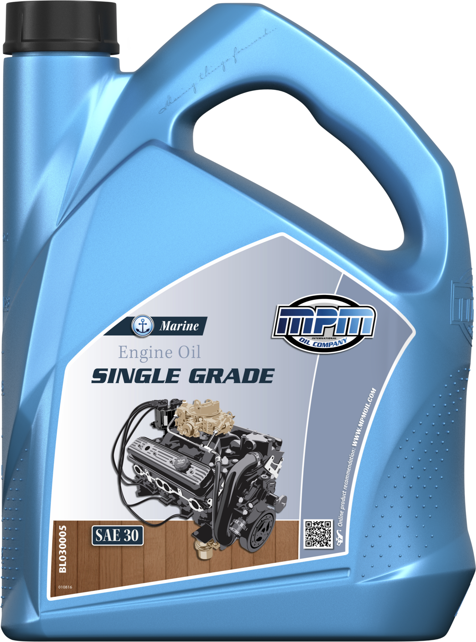MPM BL030005 motorboot motorolie SAE 30 FC-W Single Grade is een minerale motorolie speciaal voor de scheepsvaart en andere doeleinden. Deze SAE 30 motorolie is afhankelijk van het voorschrift van de fabrikant geschikt voor scheepsdieselmotoren, licht belaste tandwielkasten en hydraulische systemen. Tevens kan deze motorbootolie ook voorgeschreven worden voor scheepskeerkoppelingen met grotere vermogens.